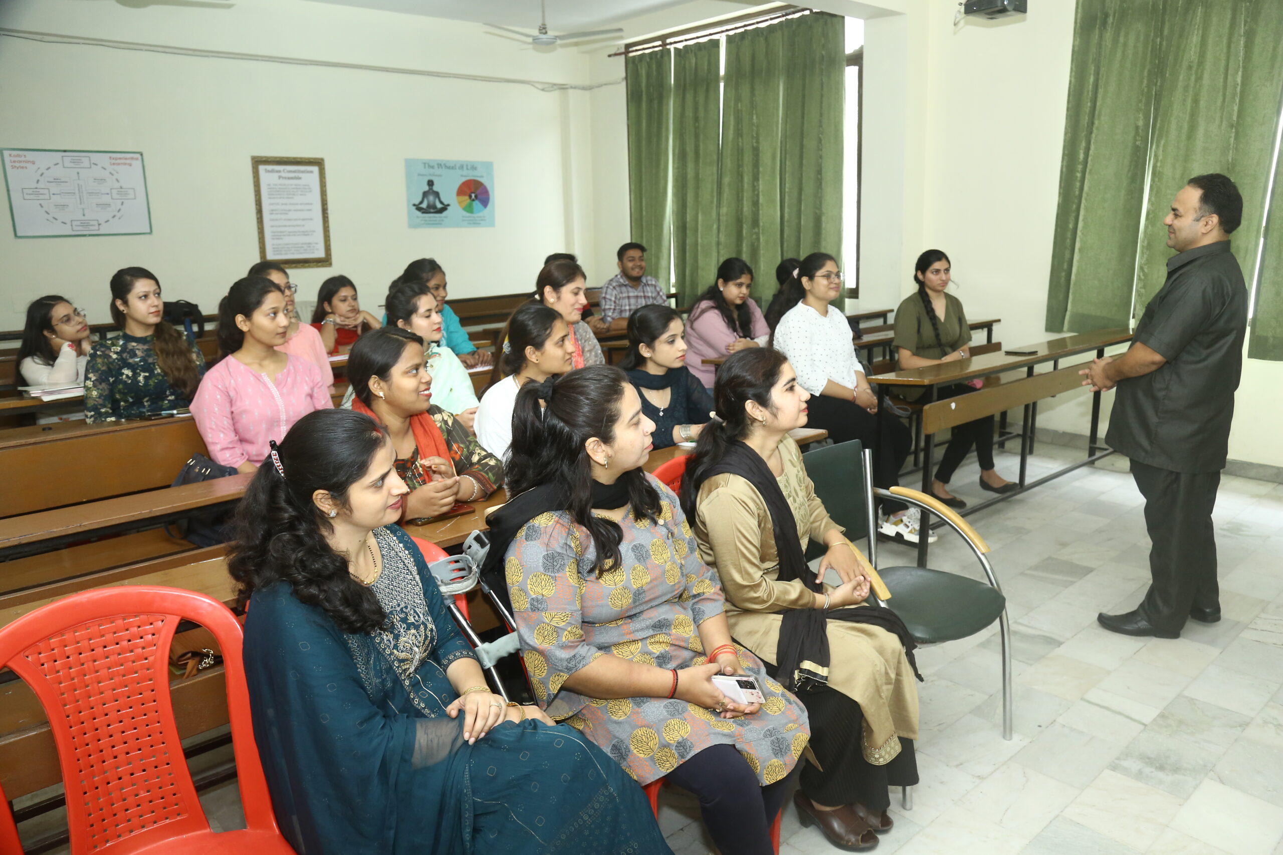 ਸਹਾਇਕ ਪ੍ਰੋਫੈਸਰ ਸ੍ਰੀਮਤੀ ਤਰੁਣ ਜੋਤੀ ਕੌਰ ਨੇ ਵਿਦਿਆਰਥੀਆਂ ਨੂੰ ਕਾਲਜ ਦੇ ਸ਼ਿਸ਼ਟਾਚਾਰ ਅਤੇ ਸਹ-ਪਾਠਕ੍ਰਮਿਕ ਗਤੀਵਿਧੀਆਂ ਅਤੇ ਐਨ.ਐਸ.ਐਸ. ਗਤੀਵਿਧੀਆਂ ਬਾਰੇ ਜਾਣਕਾਰੀ ਦਿੱਤੀ, ਜਿਨ੍ਹਾਂ ਦਾ ਆਯੋਜਨ ਕਾਲਜ ਹਰ ਸਾਲ ਬੀ.ਐਡ. ਕੋਰਸ ਦੇ ਦੌਰਾਨ ਕਰਦਾ ਹੈ। ਵੱਖ–ਵੱਖ ਸੈਲਾਂ, ਕਲੱਬਾਂ ਅਤੇ ਕਮੇਟੀਆਂ ਜਿਵੇਂ ਗ੍ਰੀਵੈਂਸ ਰੀਡਰੈੱਸਲ ਸੈਲ, ਰੈਡ ਰਿਬਨ ਸੈਲ, ਈਕੋ-ਕਲੱਬ, ਸੱਭਿਆਚਾਰਕ ਕਲੱਬ, ਅਕਾਦਮਿਕ ਕਮੇਟੀ, ਪਲੇਸਮੈਂਟ ਸੈਲ, ਐਂਟੀ–ਰੈਗਿੰਗ ਕਮੇਟੀ, ਲਾਇਬ੍ਰੇਰੀ ਕਮੇਟੀ, ਇਮਤਿਹਾਨ ਕਮੇਟੀ ਅਤੇ ਮੈਨਟਲ ਹੈਲਥ ਕਲੱਬ ਨੇ ਵਿਦਿਆਰਥੀਆਂ ਨੂੰ ਆਪਣੇ ਮੈਂਬਰਾਂ, ਕਾਰਜ ਪ੍ਰਣਾਲੀ ਅਤੇ ਅਨੇਕਾਂ ਗਤੀਵਿਧੀਆਂ ਬਾਰੇ ਜਾਣਕਾਰੀ ਦਿੱਤੀ।