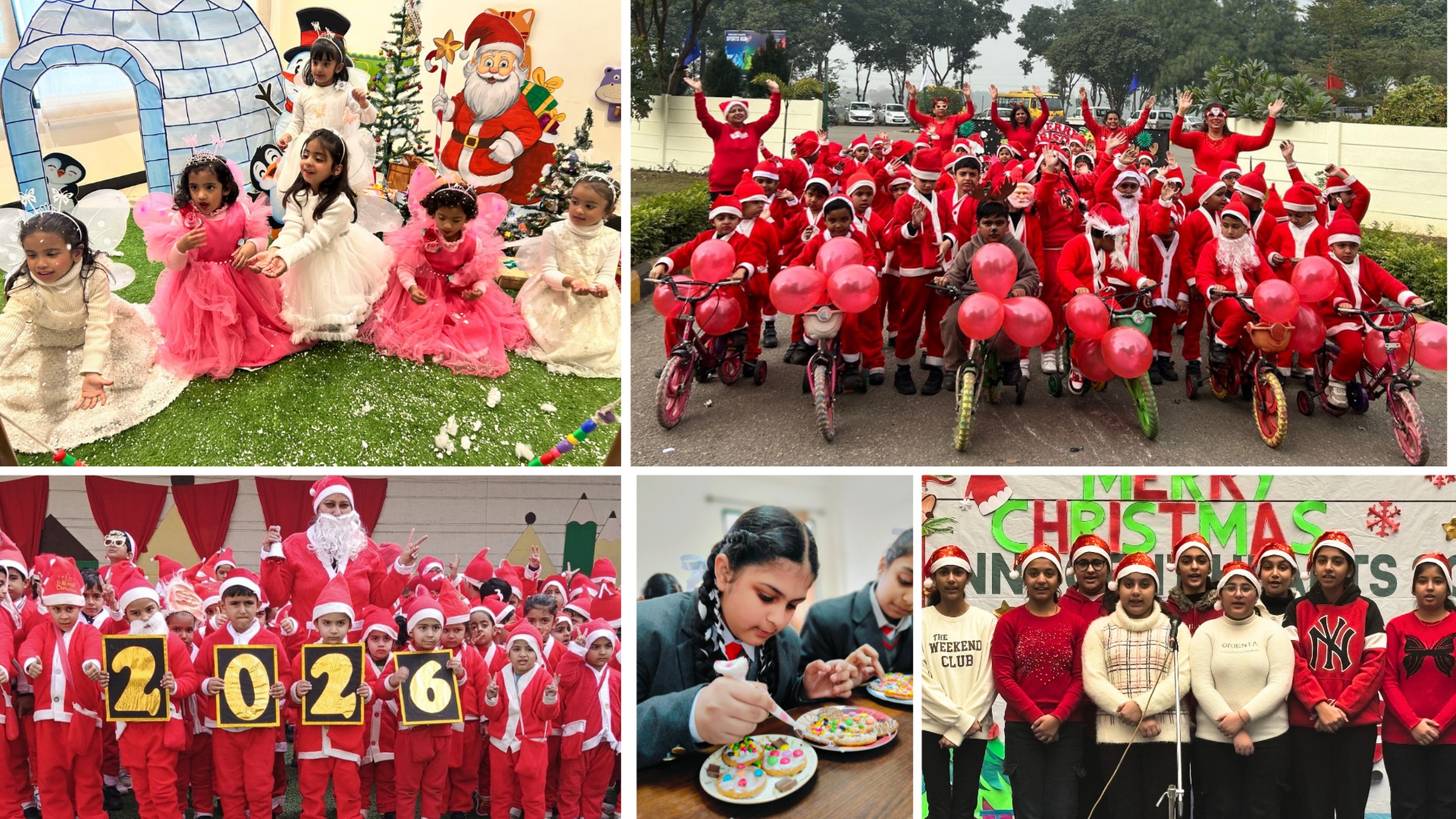 ਜਸ਼ਨਾਂ ਦੀ ਸ਼ੁਰੂਆਤ ਪ੍ਰੀ-ਪ੍ਰਾਈਮਰੀ ਵਿਭਾਗ ਨਾਲ ਹੋਈ, ਜਿੱਥੇ ਪ੍ਰੀ-ਨਰਸਰੀ ਤੋਂ ਯੂਕੇਜੀ ਤੱਕ ਦੇ ਬਲੂਮਿੰਗ ਬਡਜ਼ ਨੇ ਮਾਸੂਮੀਅਤ ਅਤੇ ਖੁਸ਼ੀ ਨਾਲ ਕ੍ਰਿਸਮਸ ਨਾਇਆ। ਕੈਂਪਸਾਂ ਨੂੰ ਤਾਰਿਆਂ, ਤੋਹਫ਼ਿਆਂ ਅਤੇ ਸੁੰਦਰ ਤਰੀਕੇ ਨਾਲ ਸਜੇ ਕ੍ਰਿਸਮਸ ਟ੍ਰੀਆਂ ਨਾਲ ਸਜਾਇਆ ਗਿਆ, ਜਿਸ ਨਾਲ ਖੁਸ਼ੀਆਂ ਅਤੇ ਉਲ੍ਹਾਸ ਨਾਲ ਭਰਪੂਰ ਮਾਹੌਲ ਬਣ ਗਿਆ। ਨਨ੍ਹੇ ਬੱਚਿਆਂ ਨੂੰ ਪ੍ਰਭੂ ਯਿਸੂ ਮਸੀਹ ਦੇ ਜਨਮ ਅਤੇ ਸੰਤਾ ਕਲੌਜ਼ ਦੀ ਕਥਾ ਬਾਰੇ ਜਾਣੂ ਕਰਵਾਇਆ ਗਿਆ, ਜਿਸ ਰਾਹੀਂ ਪ੍ਰੇਮ, ਦਇਆ, ਸਾਂਝ ਅਤੇ ਦਰਿਆਦਿਲੀ ਵਰਗੀਆਂ ਸਦੀਵੀ ਕਦਰਾਂ ਨੂੰ ਮਜ਼ਬੂਤ ਕੀਤਾ ਗਿਆ। ਲਾਲ ਅਤੇ ਚਿੱਟੇ ਰੰਗਾਂ ਵਿੱਚ ਸਜੇ ਬੱਚਿਆਂ ਨੇ ‘ਸ਼ੇਅਰ ਐਂਡ ਕੇਅਰ’ ਦੀ ਭਾਵਨਾ ਨੂੰ ਸੱਚੇ ਅਰਥਾਂ ਵਿੱਚ ਦਰਸਾਇਆ, ਜੋ ਸਮਾਰੋਹ ਦੀ ਕੇਂਦਰੀ ਆਤਮਾ ਰਹੀ।